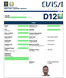 This e-visa is valid for a period of 1 year. The period of stay in Indonesia is granted for up to 180 days (extendable).